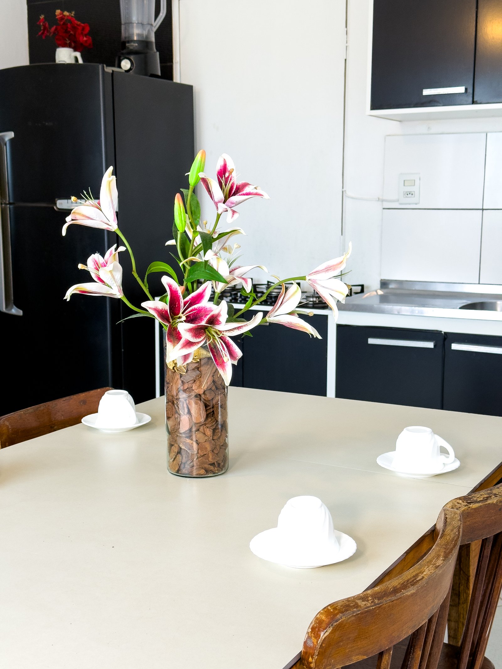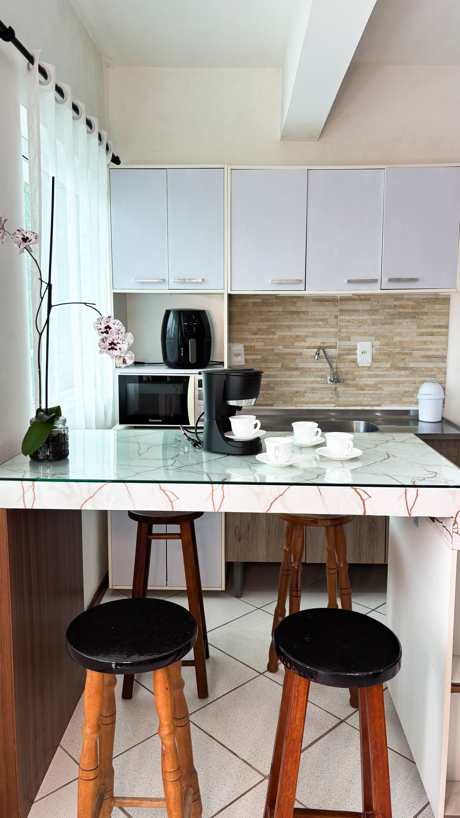 Infraestrutura com utensílios, eletros e amenities para você se sentir em casa.