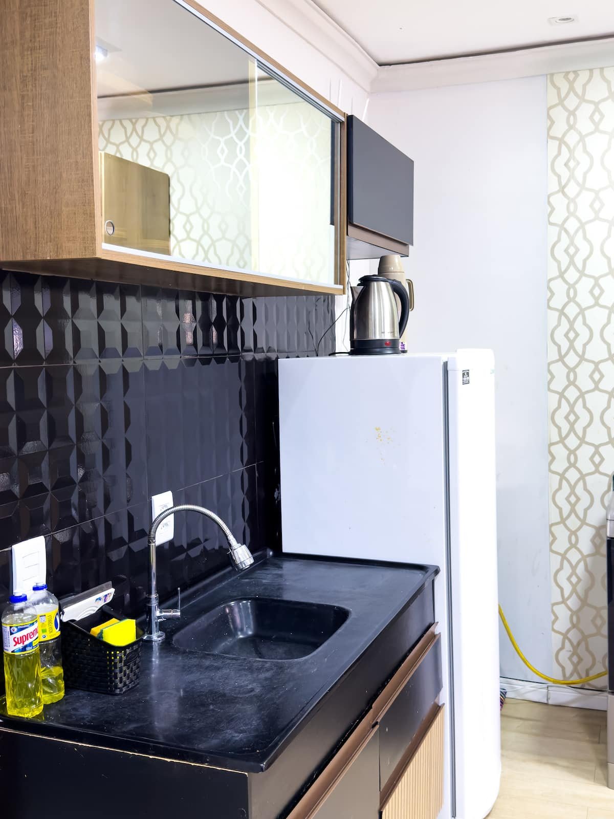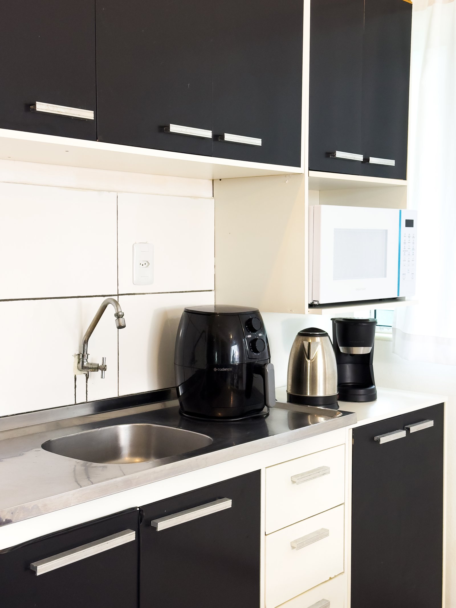 Infraestrutura com utensílios, eletros e amenities para você se sentir em casa.